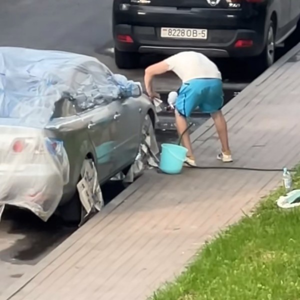 Белорус решил покрасить автомобиль прямо во дворе — это засняли на видео