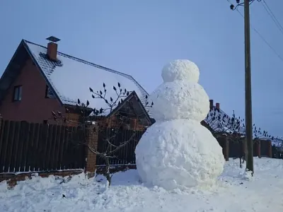 Снеговика в два человеческих роста слепили в Столинском районе