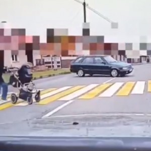 Водитель чуть не сбил женщину с коляской на пешеходном переходе. Видео