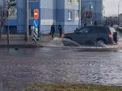 Читатель: Затопило. В Бресте на перекрёстке Краснознамённая — Сальникова вода хлещет из люка